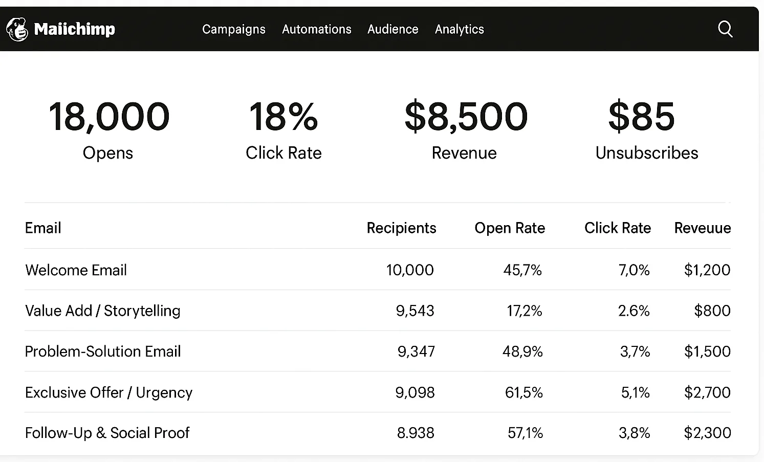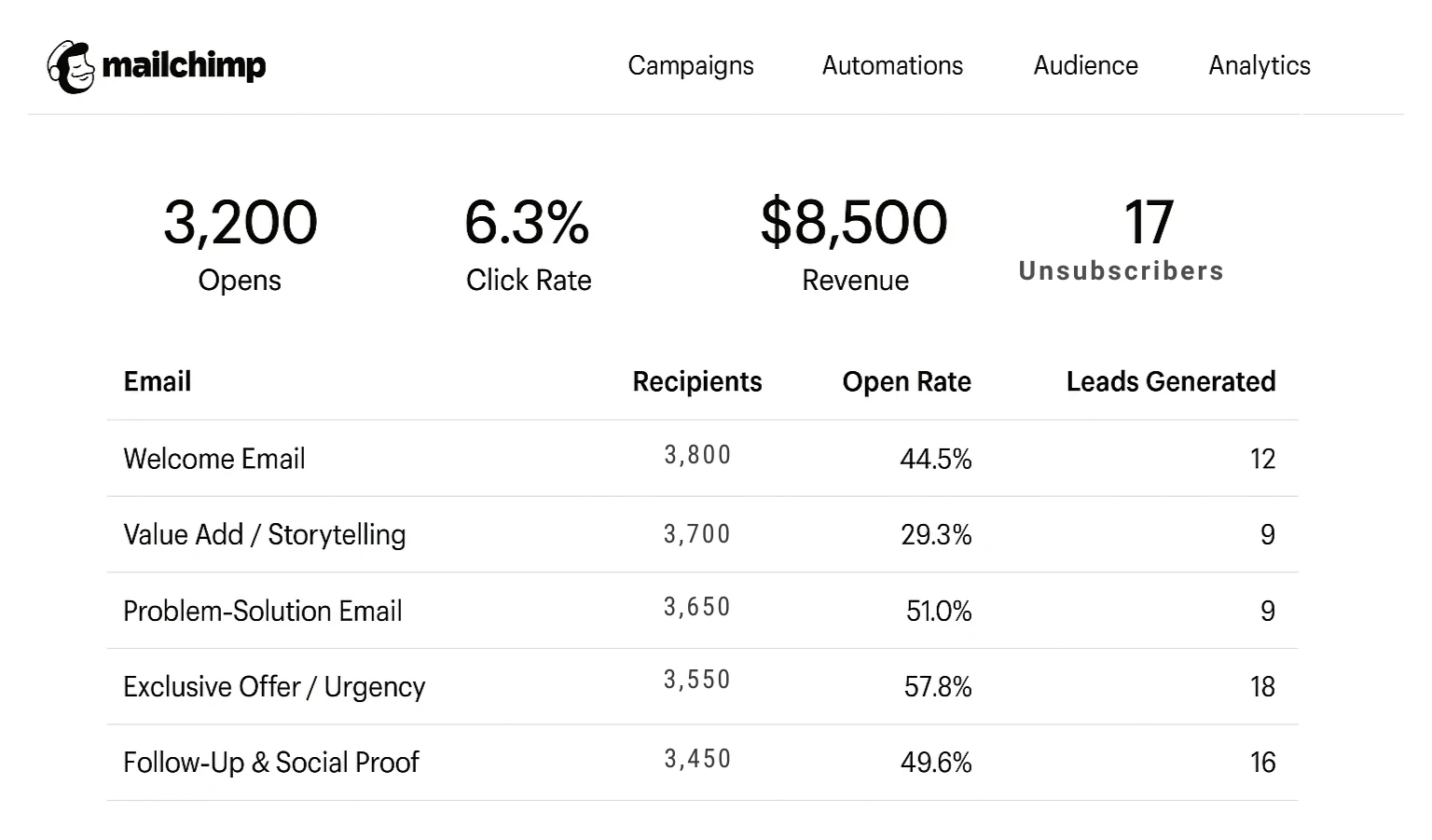 Automations: welcome, value email, appointment nudge.